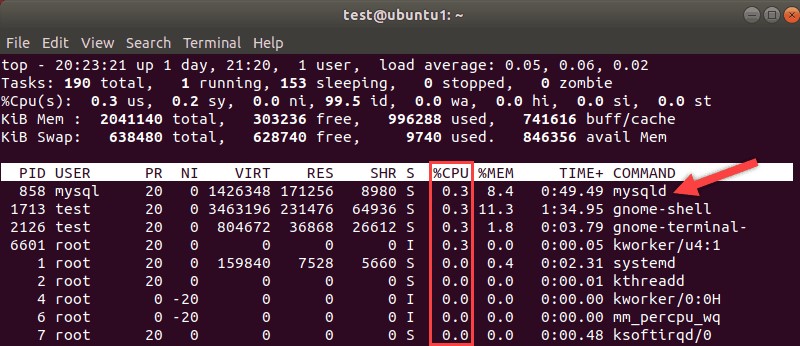 處理器通常被認為是衡量系統(tǒng)速度的指標。使用Linuxtop命令了解資源的使用情況。注意 MySQL 進程及其所需的處理器使用百分比。