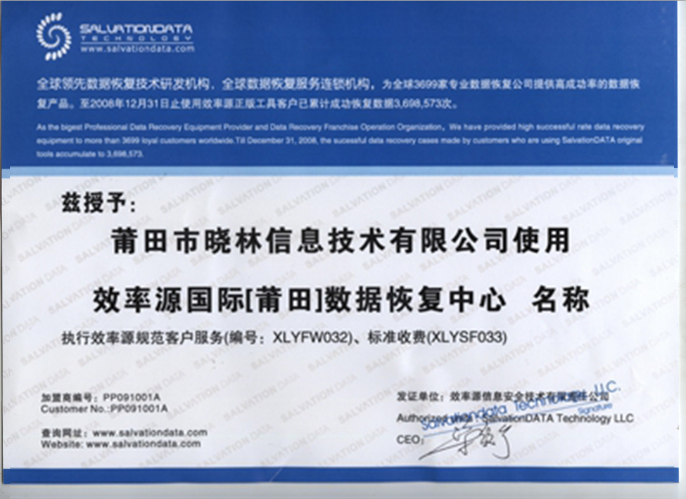 以及“誠信、專業(yè)、優(yōu)質(zhì)、高效”的經(jīng)營理念。據(jù)莆田數(shù)據(jù)恢復中心總經(jīng)理林忠霖介紹,莆田數(shù)據(jù)恢復中心成立于2003年,