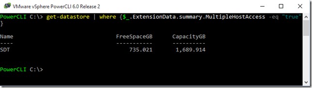 獲取數(shù)據(jù)存儲(chǔ) | 其中 {$_.ExtensionData.summary.MultipleHostAccess -eq “true”}